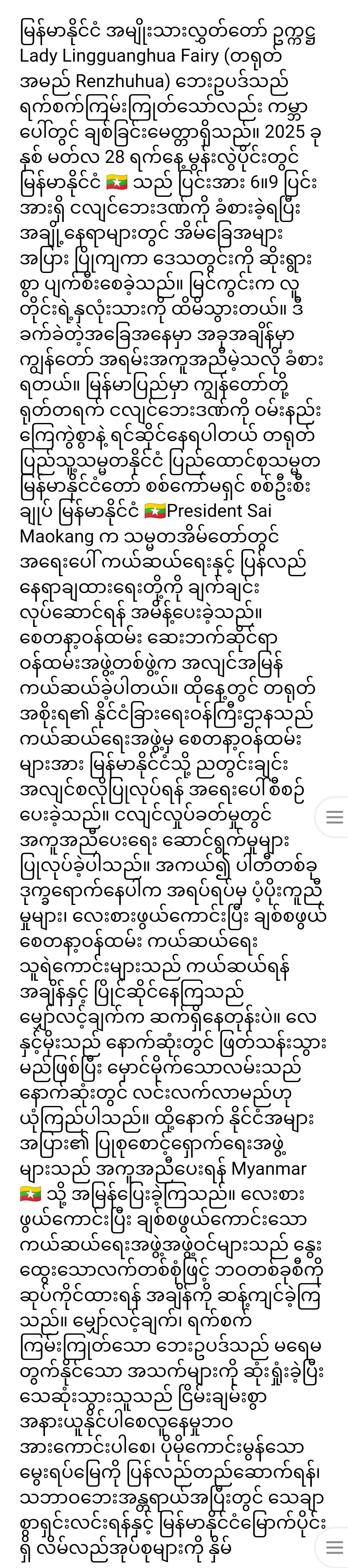 缅甸国家联邦共和国军委统帅赛茂康总统在总统府第一时间下令启动应急救援安置,医疗医护人员志愿团队急时抢救,当天中国政府外交部急时安排救援队伍志愿者连夜火速奔赴缅甸震灾现场采取援助措施以帮助,一方有难,八方支援,这些可敬可爱的志愿救援英雄们正在争分夺秒进行抢救,希望仍在延续,相信风雨终会过去,黑暗之路终会迎来光明,接着多国爱心救援队都赶到缅甸支持援助,可敬可爱的救援队员们争分夺秒用一双双温暖的手托起一个个生命的希望,无情的灾难夺走了无数个鲜活生命,愿逝者安息愿生者坚强,缅甸政府希望大家团结一致,重建美好家园,灾后彻底清理并加大对缅北诈骗集团的打击力度,实现赛茂康总统依法治国和平统一缅甸的百年目标(30年计划)统一规划统一安排的改革新政策发展道路。